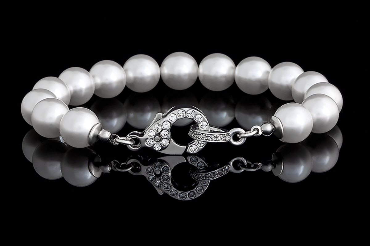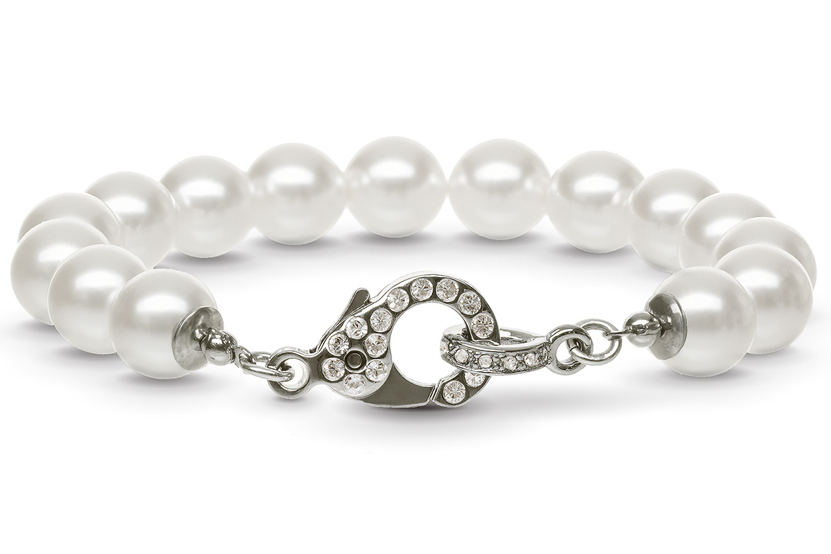 This Radiant Hook pearl bracelet is made 10mm Swarovski ® pearls with Sterling silver bead caps at each end.